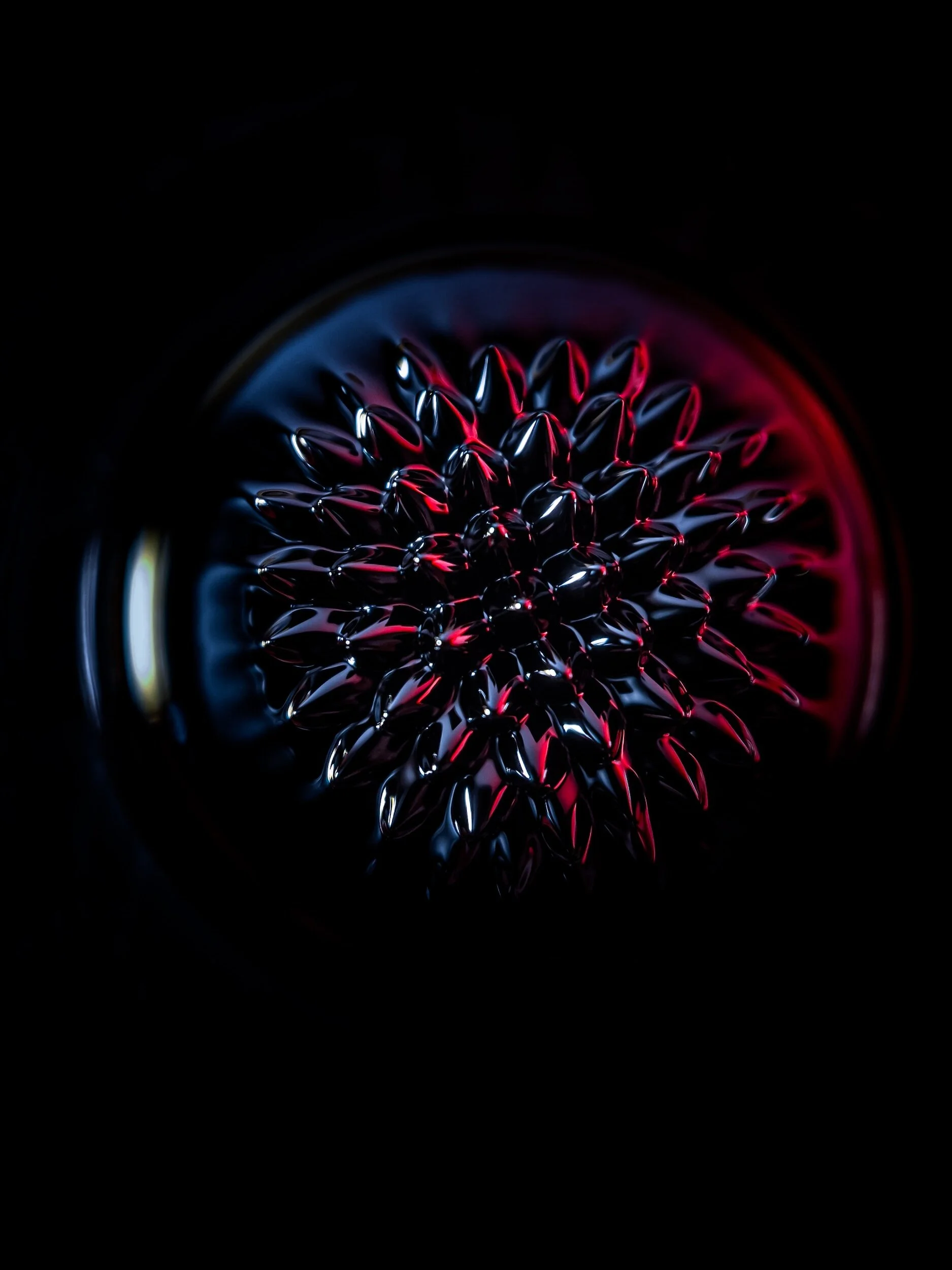 Shodekeh's six-movement composition for the event was entitled "Vymatics," applying the "V" in "vocal" to Cymatics, generated by sound vibrations on water and seen through a cymascope, which was developed and executed by Erica Hansen. As the track played through the headsets, voyagers encountered these cymatic animations projected onto Aquarium walls. Each light projection represented a real-time responsive projection of the biodiverse communications found within the "Vymatics" composition that the artists created.